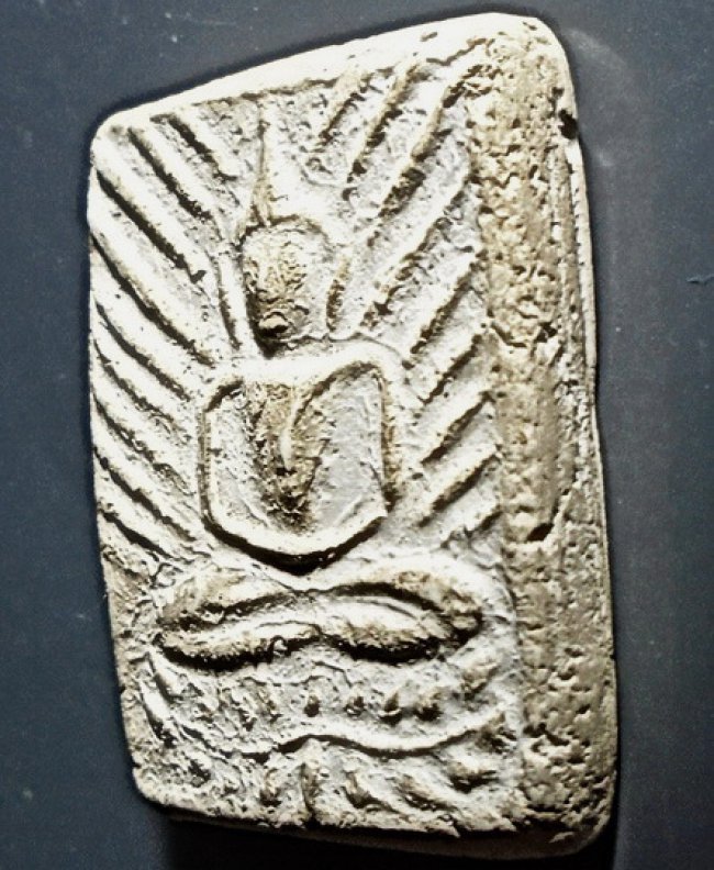 ลป.เผือก วัดกิ่งแก้ว พิมพ์รัศมีฐานบัวเลื้อย หลังยันต์สาริกา ปี 2496