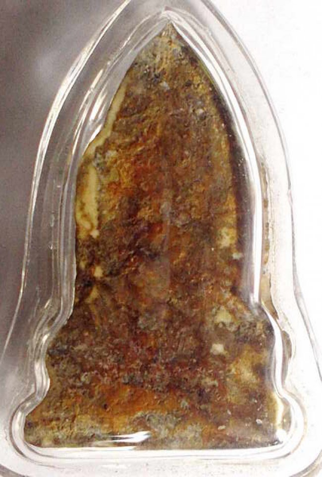 พระกรุทัพข้าว สุโขทัย พิมพ์โคนสมอเล็ก เนื้อผง หายาก ขนาดพระ 2.3 x 3.3 ซม.เลี่ยมเก่าเดิม สภาพสวย