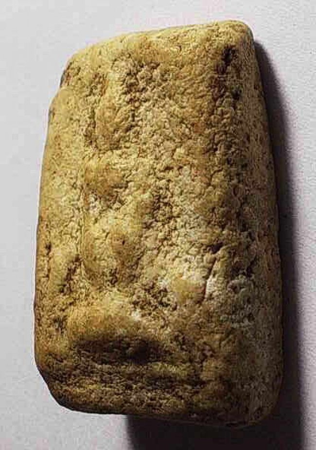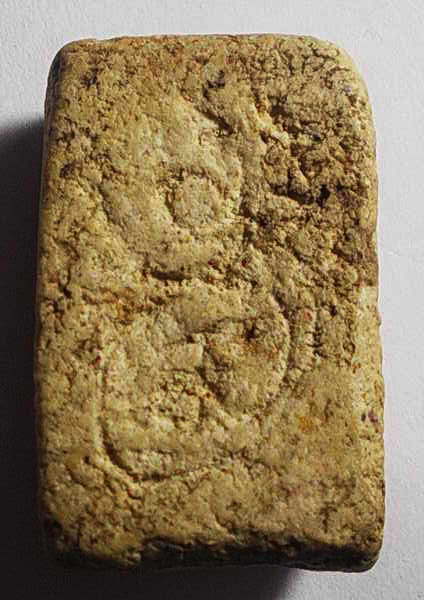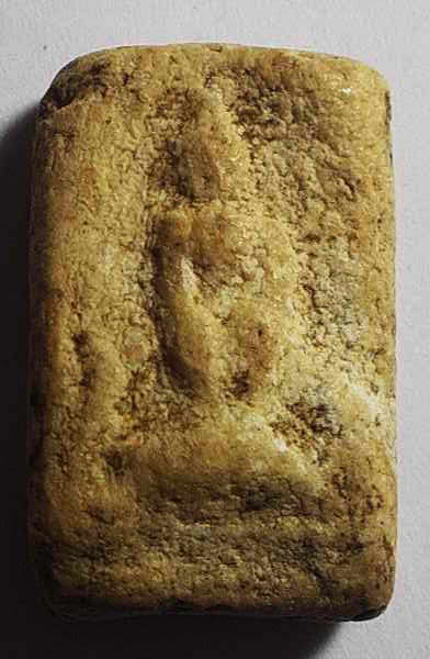 พระเก่าไม่ทราบที่ ปางป่าเลไลย์ เนื้อผงน้ำมันเก่า หลังจารย์ ขนาดพระ 1.6 x 2.7 ซม.