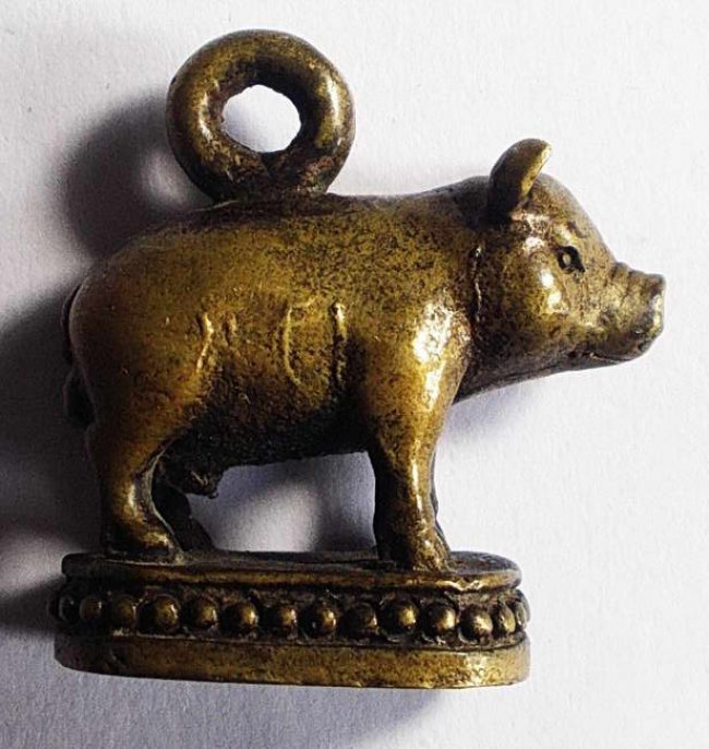 หมูมหาลาภ หล่อโบราณ หูในตัว ลพ.เป่ิ่น วัดบางพระ