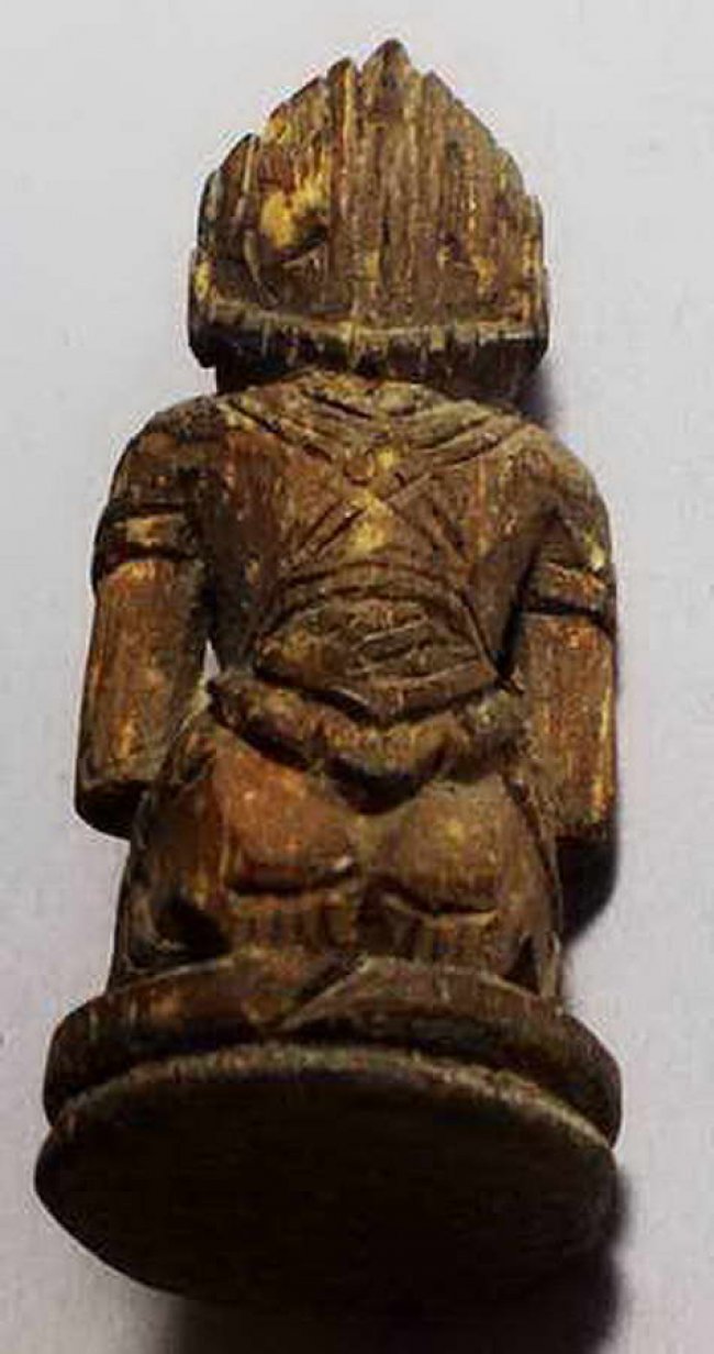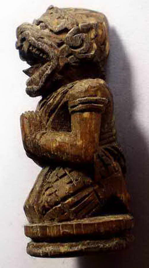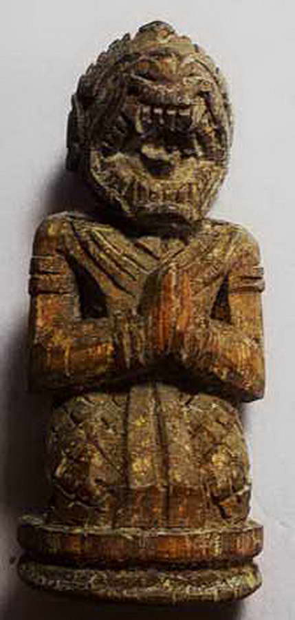 หนุมานไม้แกะเก่า พิมพ์พนมมือ ใต้ฐานลงจารย์
