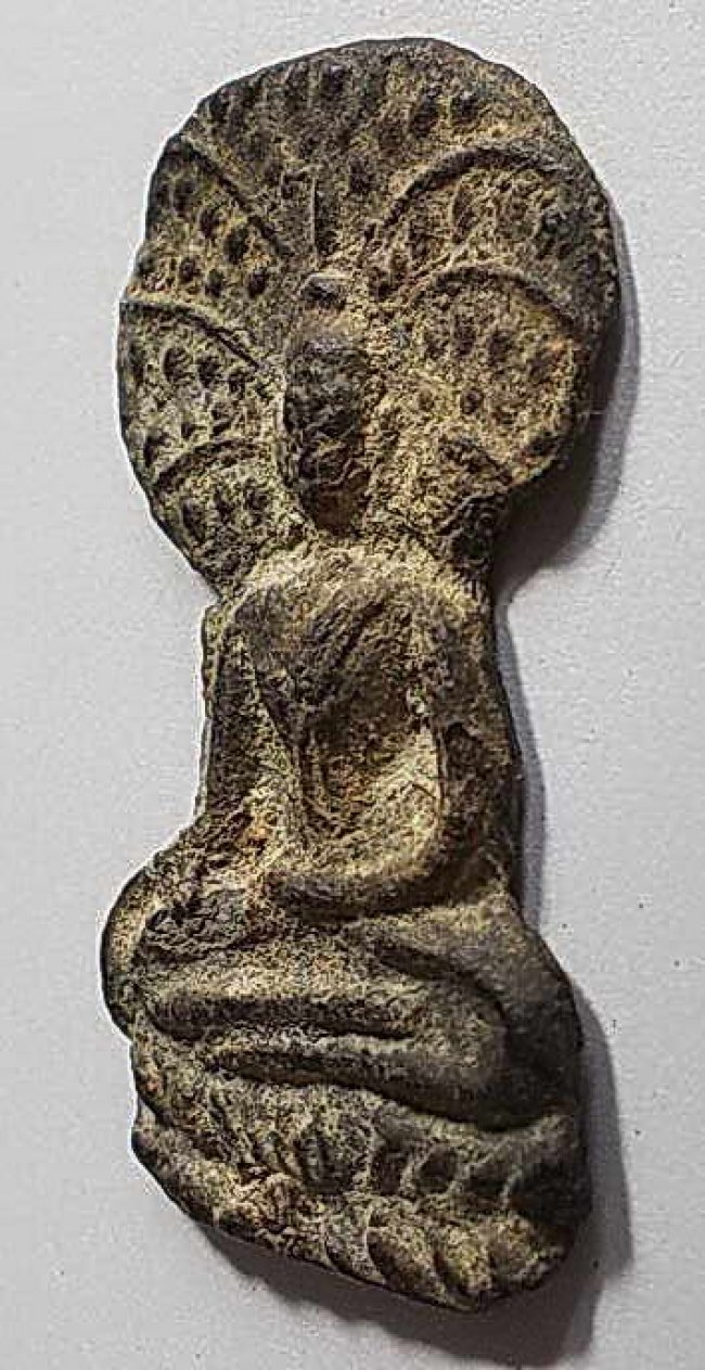 พระขุนแผนใบพุทรา เนื้อชินเงิน กรุวัดใหญ่ชัยมงคล อยุธยา