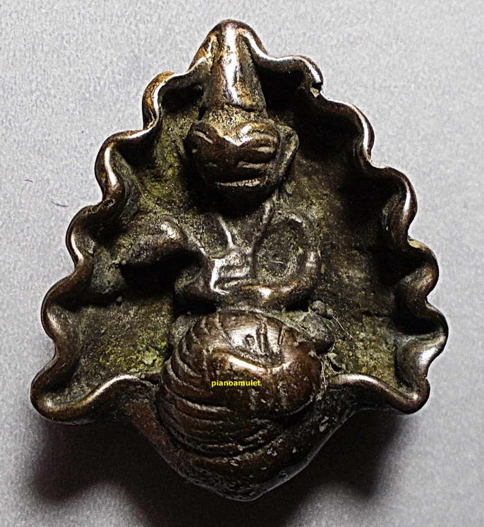 พระอุปคุตเขมรหอยสังข์ ยุคต้น เนื้อสัมฤทธิ์เงินกลับดำ