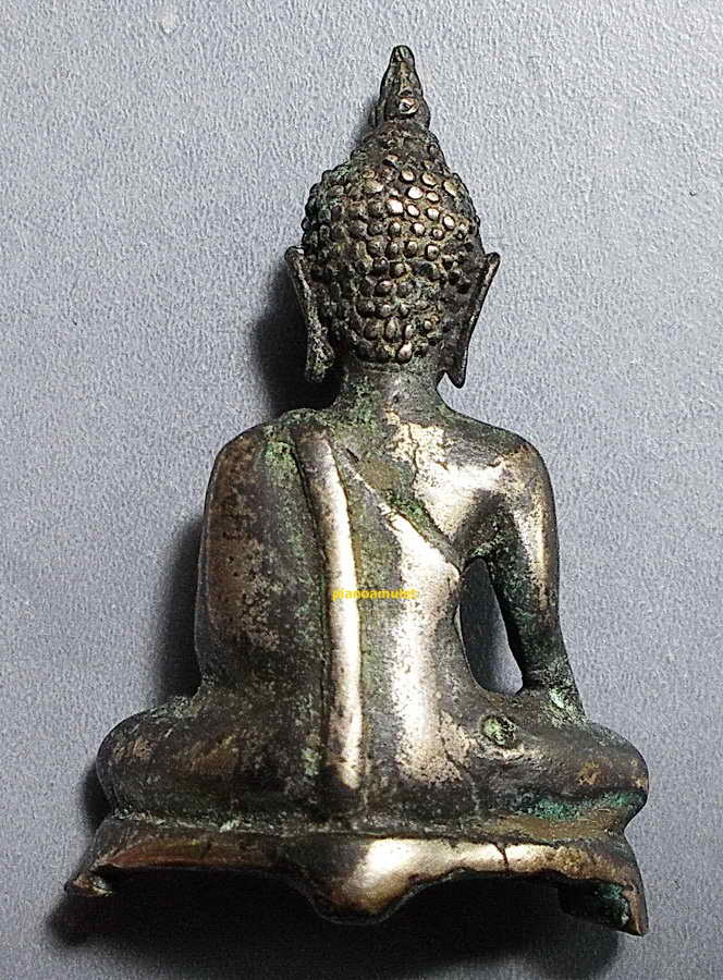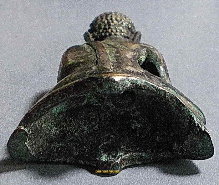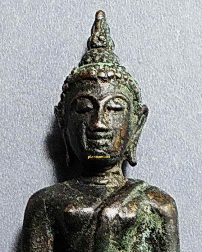 พระเชียงแสนสิงห์สาม ขนาดห้อยบูชา สร้างในพุทธศตวรรษที่ 18 เนื้อสัมฤทธิ์เงิน สนิมเขียว ขนาดองค์พระ 3 x 4.5 ซม.สภาพสวยเดิม