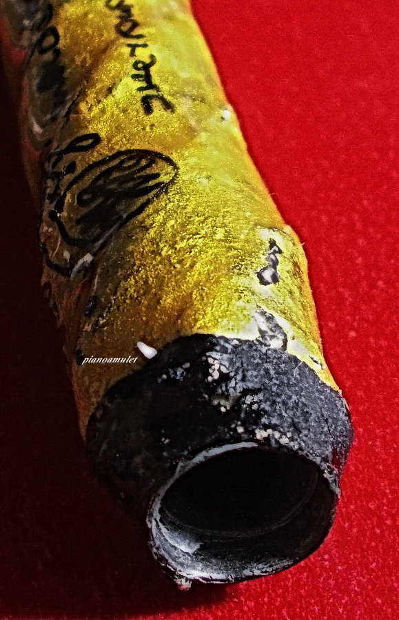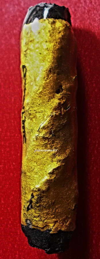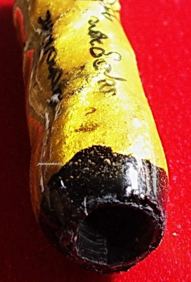 ตะกรุดโทนเก่า ไส้ตะกั่ว จุ่มรักทาทองลงจารย์เคลือบแล็ค