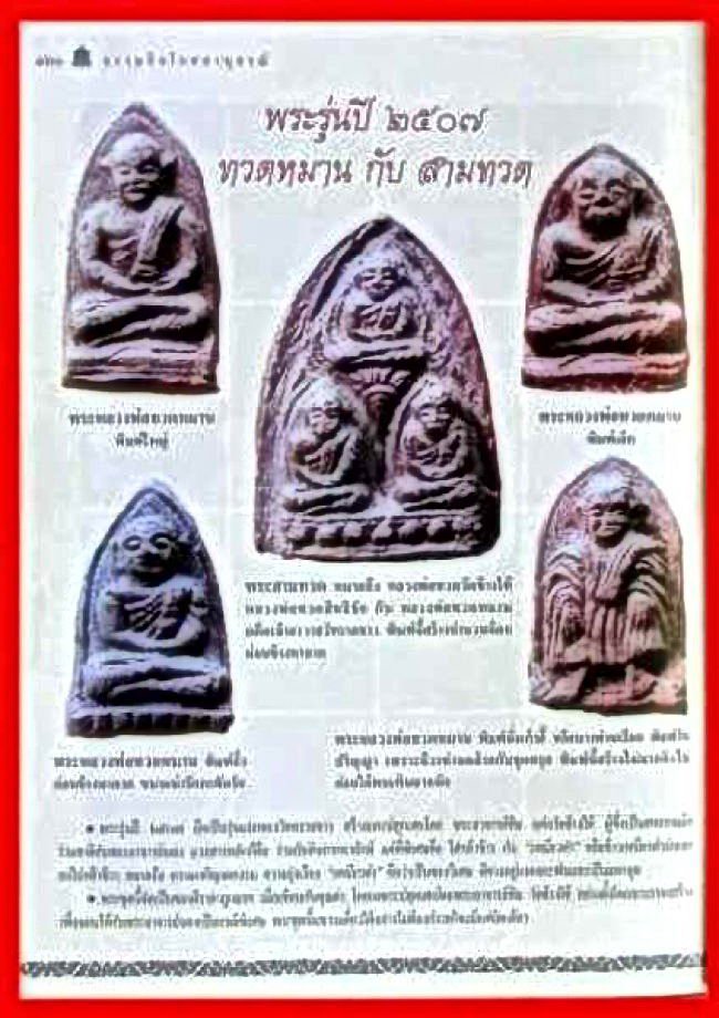 ทวดหมาน พิมพ์จิ๋ว ปี 2507 รหัส : 3707 ขายแล้ว ประเภท : พระลป.ทวด ทวดหมาน พิมพ์จิ๋ว วัดทรายขาว ปี 2507 เนื้อว่านดินกากยายักษ์ ขนาดพระ 1.3 x 2.2 ซม.หายาก สภาพสวย ขายแล้ว ทวดหมานเป็นพระยุคแรกของวัดทรายขาว โดยอาจารย์นองวัดทรายขาว ได้นิมนต์อ.ทิม วัดช้างไห้ มาประกอบพิธีสร้างพระเครื่องลพ.ทวดหมานใน ปี07 โดย อ.ทิมกดแม่พิมพ์พระเป็นปฐมฤกษ์ด้วยตนเอง ที่วัดช้างให้ และได้มีการการปลุกเสกร่วมกันระหว่างอ.ทิม อ.นอง และเกจิอีกหลายรูปจากนั้นได้มีการบวงสรวงอัญเชิญวิญญาณของหลวงพ่อทวด หลวงพ่อทวดหมาน หลวงพ่อทวดไกร หลวงพ่อทวดสิทธิชัย หลวงพ่อทวดลิ้นดำ เพื่อเป็นประธานในพิธีพุทธาภิเษก ณ.อุโบสถ วัดช้างให้ เมื่อเสร็จพิธีแล้วอ.ทิมได้นำพระทั้งหมดย้อนไปเข้าพิธีปลุกเสกใหญ่ที่วัดทรายขาวอีกครั้งนึง พระชุดนี้มีพุทธคุณและมวลสารที่ดีเยี่ยม มวลสารหลักของพระรุ่นนี้คือ ว่านกับดินกากยายักษ์ แต่พิเศษก็คือ "ใส่กล้าข้าว" และ "ข้าวเหนียวดำ" โดยถือเคล็ด กล้าข้าว=ความเจริญงอกงาม เจริญรุ่งเรือง ข้าวเหนียวดำ=เด่นทางด้านคงกระพัน และ มหาอุตม์ เมื่อวันที่ : 2021-03-19 09:37:29 |