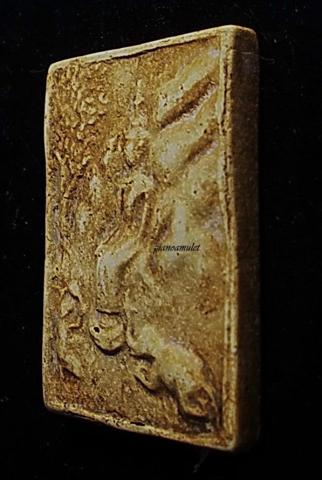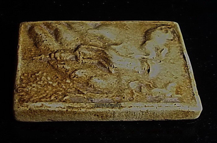 พระเนื้อผงน้ำมัน ปางป่าเลไลย์ หลังยันต์ วัดมฤคทายวัน ปี 2466