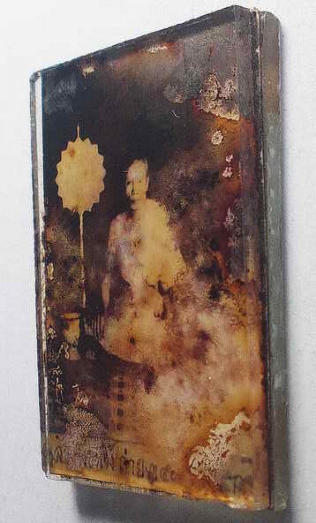 รูปถ่ายหลังยันต์อัดกระจก หลวงพ่อพริ้ง วัดโบสถ์โก่งธนู จ.ลพบุรี ปี 2500