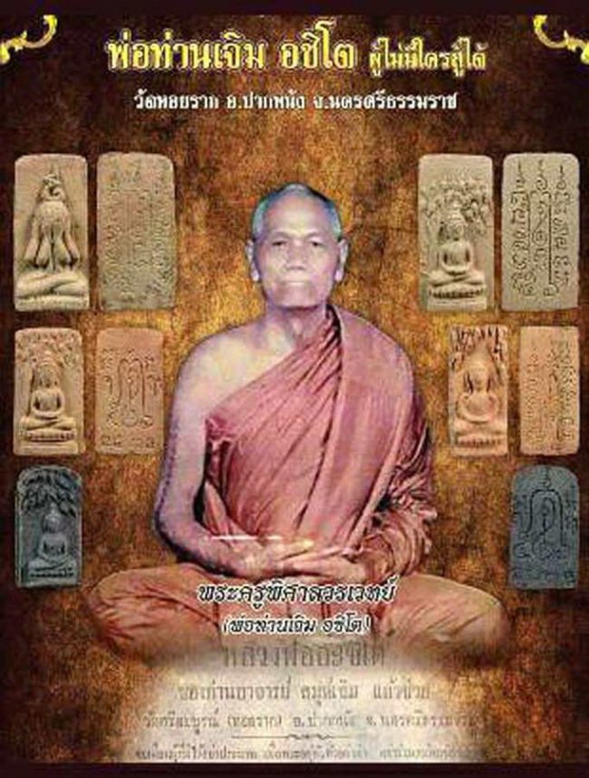 พระผงพรายสมุทร หลวงพ่อเจิม อชิโต วัดหอยราก พิมพ์ปรกโพธิ์ใหญ่ ปี 2499 รหัส : 4300 ราคา : 2000 .- ประเภท : พระเนื้อดินผงว่าน พระผงพรายสมุทร หลวงพ่อเจิม อชิโต วัดหอยราก พิมพ์ปรกโพธิ์ใหญ่ ปี 2499 ขนาดพระ 2.4 x 4.5 ซม.พระหนา สภาพสวย ประวัติพ่อท่านเจิม อชิโต หรือ พระครูพิศาลวรเวทย์ อดีตพระเกจิอาจารย์ขลังแห่งลุ่มน้ำปากพนัง ต.ปากพนังตะวันตก อ.ปากพนัง จ.นครศรีธรรมราช ปี 2499 หลวงพ่อเจิมปลุกเสกเดียวมาตลอดมาถึงปี 2502 พิธีใหญ่ปลุกเสกใหญ่อีกครั้งโดยหลวงพ่อเจิมและนิมนต์เกจิดัง 1.หลวงพ่อคล้าย วัดสวนขัน 2.หลวงพ่อแปลก วัดหูล่อง 3.หลวงปู่่เขียว วัดหรงบน 4.หลวงพ่อคง วัดบ้านสวน 5.หลวงพ่อมุ่ย ป่าระกำเหนือ 6.หลวงพ่อจันทร์ วัดทุ่งเฟื่อ 7.หลวงพ่อสังข์ วัดดอนตรอ 8.หลวงพ่อคลิ้ง วัดถลุงทอง 9.หลวงพ่อจับ วัดบางจาก จำนวนการสร้างตามพระธรรมขันต์ วิธีการบูชาพระผงพรายสมุทร อชิโต พิมพ์ปรกโพธิ์ และพระผงพรายสมุทร อชิโต ของพ่อท่านเจิม อชิโตนั้น มีดังนี้ นะโม 3 จบ กล่าวต่อ ติวาคะภะ โธพุทนังสา นุสมะวะเท ถาสัตถิระ สามะทัมสะ ริปุโรตะ นุตอะทูวิ กะโลโตคะ สุโนปันสัม ณะระจะชา วิชโธพุทสัมมาสัมหังระ อะวาคะภะ โสปิติอิ (ขอขอบคุณท่านเจ้าของข้อมูล) เมื่อวันที่ : 2025-08-26 11:28:37 |