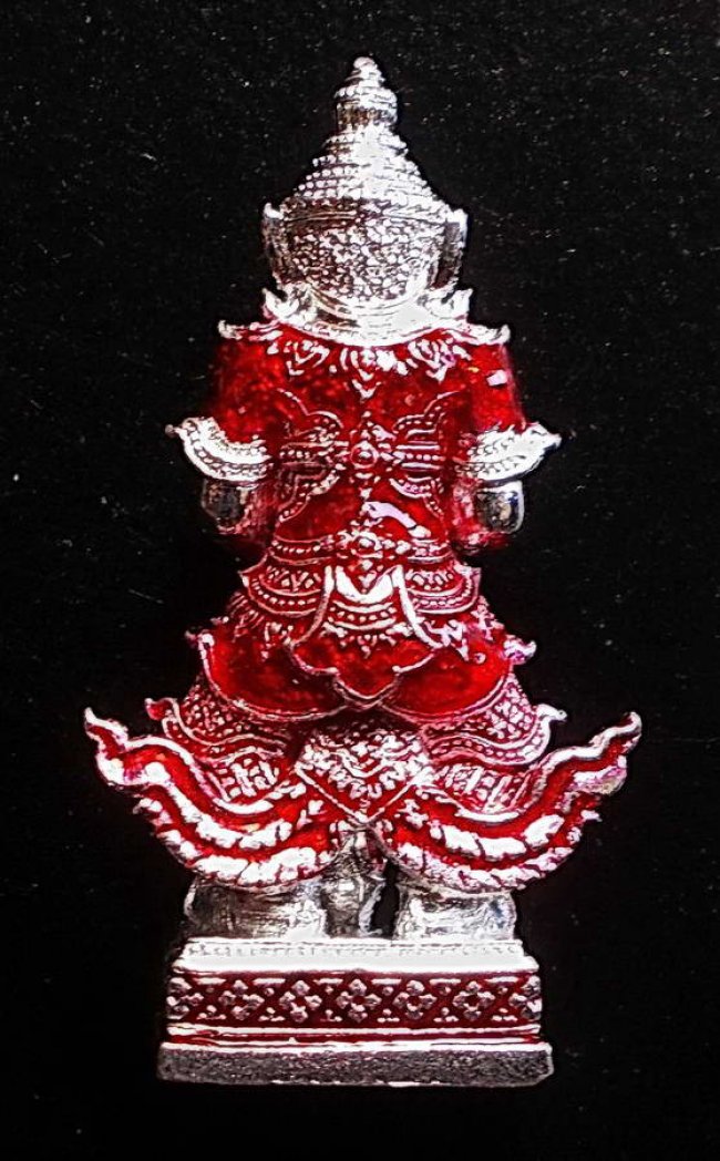 ท้าวเวสสุวรรณ รุ่นยกฐานะ ทองนำโชค หลวงพ่อทอง วัดบ้านไร่ เนื้อสัตตะชุบเงิน ลงยาแดง พร้อมกล่องเดิม