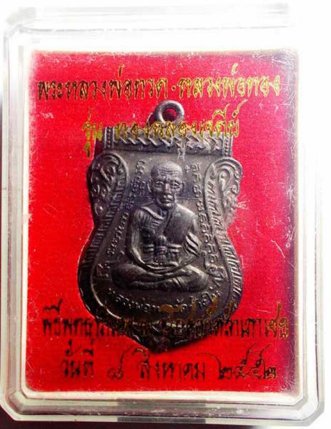 เหรียญใบเสมาหน้าเลื่อน หลวงพ่อทวด รุ่น"ทองฉลองเจดีย์" พระอาจารย์ทอง วัดสำเภาเชย ปี 2552