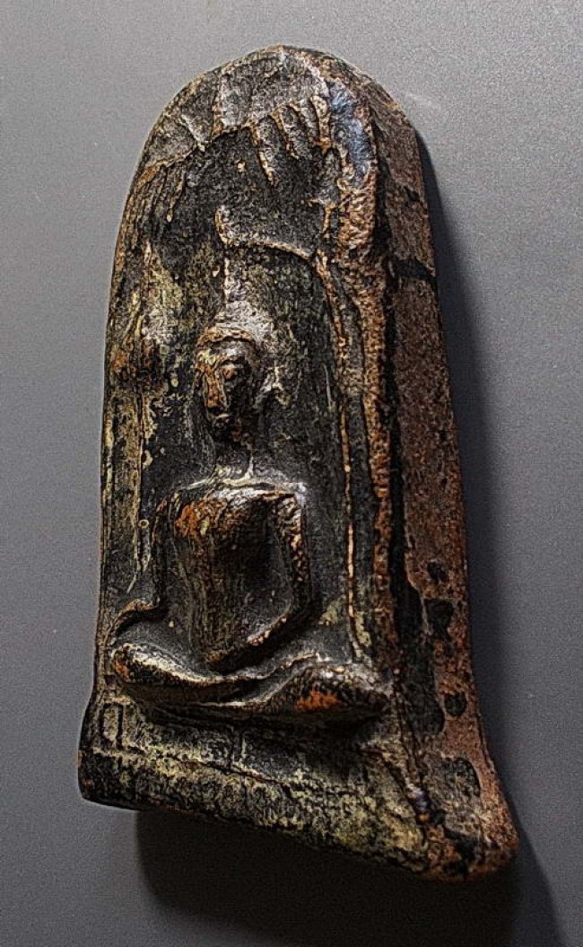 พระยอดขุนพล พิมพ์ฉัตรทวน รหัส : 5055 ราคา : 0 .- ประเภท : พระกรุเนื้อดิน/เนื้อผง พระยอดขุนพลพิมพ์ฉัตรทวน เนื้อดินรักทองเก่า ขนาดพระ 4 x 6 ซม.สภาพสวยเดิม พระขุดพบจากบริเวณกรุศาลเจ้า (ตลาดลำไย) อำเภอเมือง จังหวัดเชียงใหม่ และ บริเวณวัดร้างบ่อแก้ว หรือบ้านปิน จังหวัดแพร่ พระที่พบส่วนใหญ่จะเป็นพระเนื้อดินเผา โดยจะพบทั้งที่มีการลงรักปิดทองและส่วนที่ไม่ได้ลงรักปิดทองก็มี นอกจากนี้ยังพบที่เป็นเนื้อว่านอีกด้วย ศิลปะที่เห็นเป็นศิลปะแบบเดียวกับพระปรกโพธิ์เชียงแสน ซึ่งเป็นสกุลช่างล้านนา สันนิษฐานว่า สร้างขึ้นในรัชสมัยพระเจ้าติโลกราช มหาราชกษัตริย์ล้านนาเชียงใหม่ ราชวงศ์มังรายพระองค์ที่เก้าพุทธลักษณะของพระยอดขุนพลฉัตรทวนนั้นจะเป็นพระนั่งปางมารวิชัย ปรากฏรายละเอียดของพระพักตร์ชัดเจน การวางพระกรแบบแขนอ่อนวางพระหัตถ์อยู่นอกเข่า ซึ่งมักจะเรียกว่าเข่าใน นอกจากนี้ยังมีรายละเอียดของเครื่องประกอบเป็นฉัตร และบังสูรย์ ประกอบด้านซ้ายและด้านขวา ล้วนเป็นเครื่องสูง ซึ่งจะใช้เฉพาะกับองค์กษัตริย์เท่านั้น พุทธลักษณะของพระยอดขุนพลฉัตรทวนนั้นจะเป็นพระนั่งปางมารวิชัย ปรากฏรายละเอียดของพระพักตร์ชัดเจน การวางพระกรแบบแขนอ่อนวางพระหัตถ์อยู่นอกเข่า ซึ่งมักจะเรียกว่าเข่าใน นอกจากนี้ยังมีรายละเอียดของเครื่องประกอบเป็นฉัตร และบังสูรย์ ประกอบด้านซ้ายและด้านขวา ล้วนเป็นเครื่องสูง ซึ่งจะใช้เฉพาะกับองค์กษัตริย์เท่านั้น พระเครื่องชนิดนี้มีขนาดค่อนข้างเขื่อง พุทธคุณนั้นว่ากันว่าเด่นทางด้านอยู่คงและแคล้วคลาดศาสตราวุธ เมื่อวันที่ : 2023-02-01 14:38:16 |