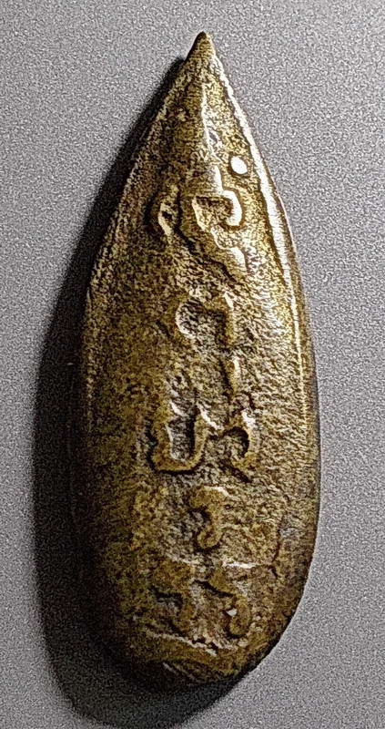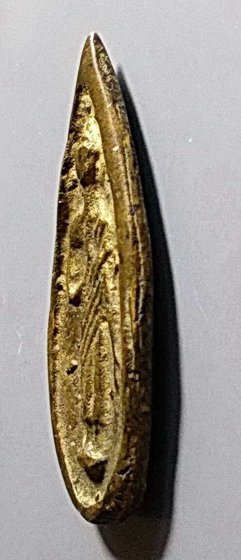 เหรียญหล่อ พระคันธารราฐ วัดพระปฐมเจดีย์ฯ ปี 2476 พิมพ์แบบปลายข้าว (ใบหอก)