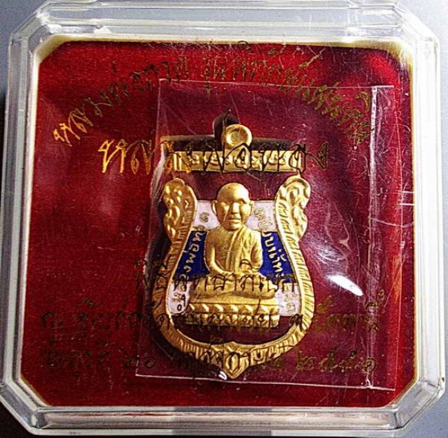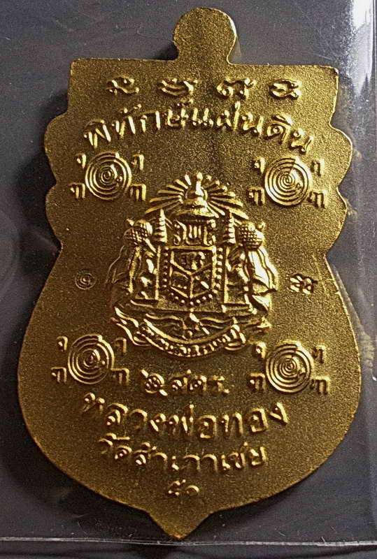เหรียญหลวงพ่อทวดหัวโต รุ่นพิทักษ์แผ่นดิน เนื้อลงยาสีธงชาติชุบทอง ลพ.ทอง วัดสำเภาเชย