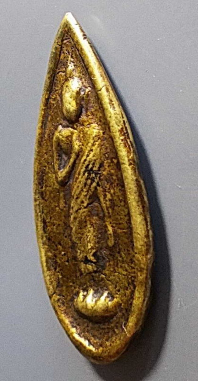 เหรียญหล่อพระคันธารราฐ หลังยันต์ ปี 2476 พิมพ์กลีบจำปา วัดพระปฐมเจดีย์