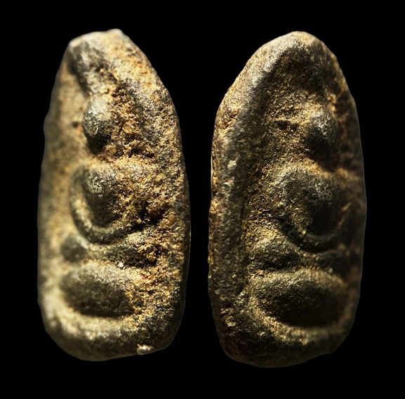 พระพิจิตรเม็ดข้าวเม่า พิมพ์แขนกลม เกศคด ชินเงิน