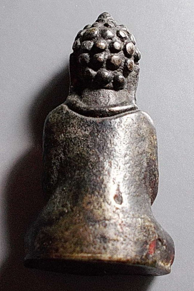 พระร่วงนั่ง ปางสมาธิ ศิลปะทวารวดี เนื้อสัมฤทธิ์เงิน ขนาดห้อยบูชา 2 x 3.7 ซม.หายาก สวยเดิมๆ