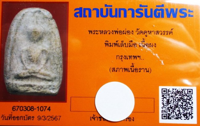 สมเด็จ พิมพ์เล็บมือ รุ่นแรก ลพ.ผ่อง วัดคูหาสวรรค์ กทม.ปี 2457 พร้อมบัตรรับรอง