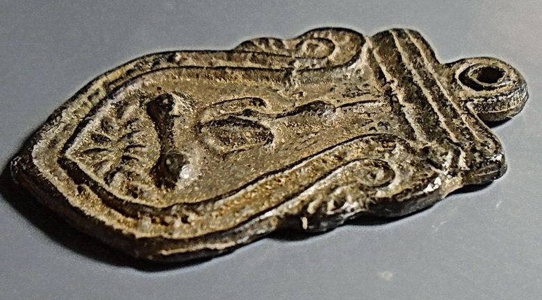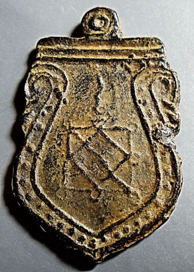 เหรียญหล่อ ลพ.โต วัดวิหารทอง ชัยนาท พิมพ์เสมาสมาธินั่งบัว หลังยันต์ เนื้อตะกั่ว ปี 2460