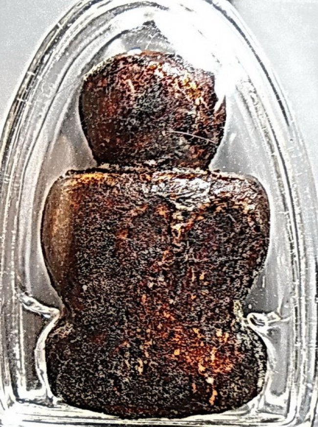 พระปิดตา ไม้แกะเก่า ในเลี่ยมพร้อมบูชา