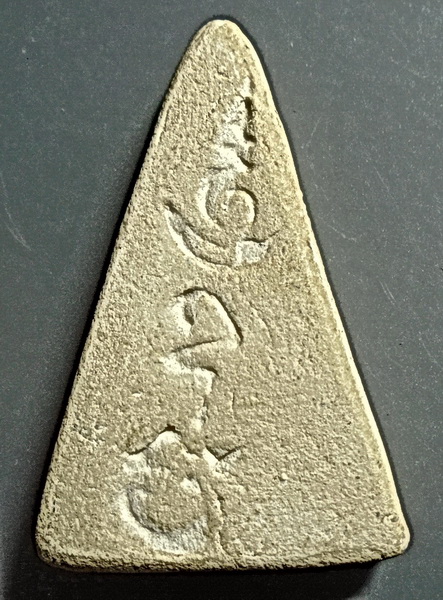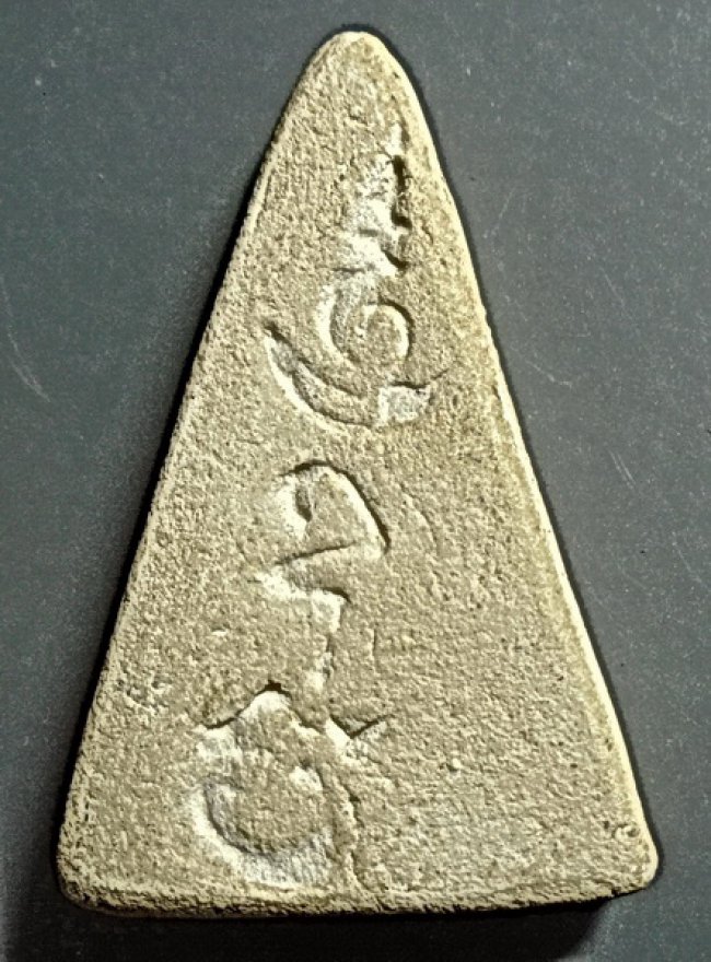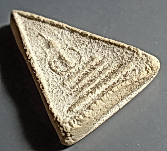 พระพิมพ์สามชั้นหน้าจั่ว หลังยันต์สาริกา ลป.เผือก วัดกิ่งแก้ว ปี 2496