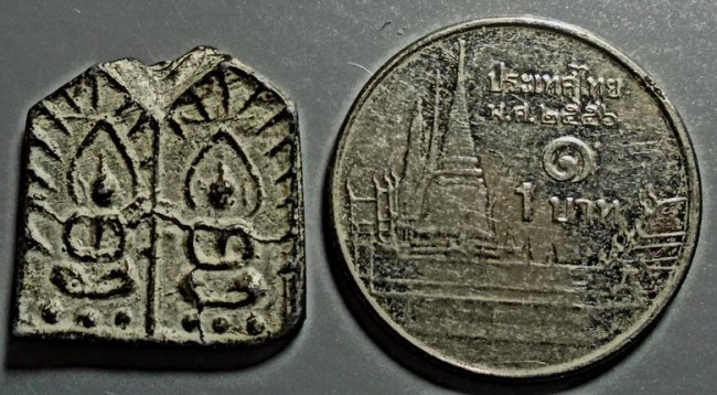 เหรียญหล่อสมาธิคู่รัศมีหลังจารย์ เนื้อตะกั่ว ลป.ศุข วัดปากคลองมะขามเฒ่า