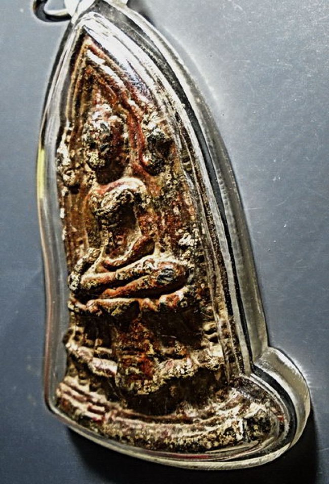พระโคนสมอ ปางมารวิชัย สนิมแดง กรุวังหน้า ในเลี่ยมเก่า