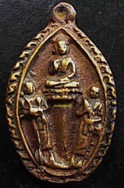 เหรียญหล่อโบราณ หลวงพ่อเงิน วัดบางคลาน พิมพ์ใบสาเก ออกวัดหนองเต่า