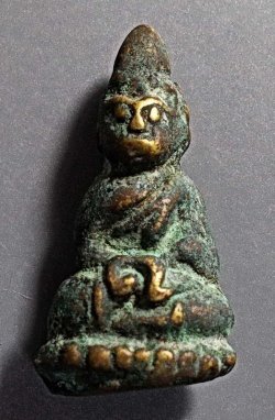 พระชัยวัฒน์ หลวงปู่เอี่ยม วัดหนัง พิมพ์เขื่อนใหญ่ ใต้ฐานอุดชันโรง ปี 2463