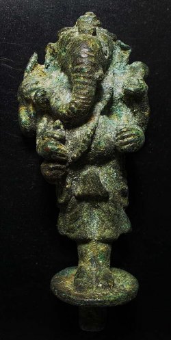 พระพิฆเนศเก่า เนื้อสัมฤทธิ์ สนิมเขียว ปางยืน
