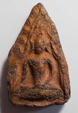 พระขุนแผนใบพุทรา เนื้อดิน กรุวัดใหญ่ชัยมงคล อยุธยา